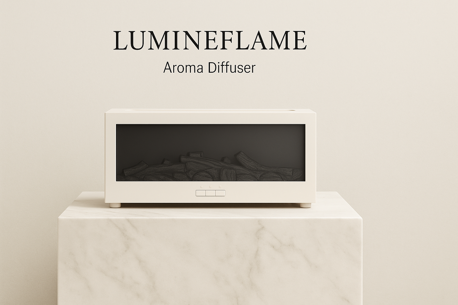 Convierte cualquier espacio en un oasis de calma y estilo con su efecto chimenea realista y bruma aromática ultrasónica.
